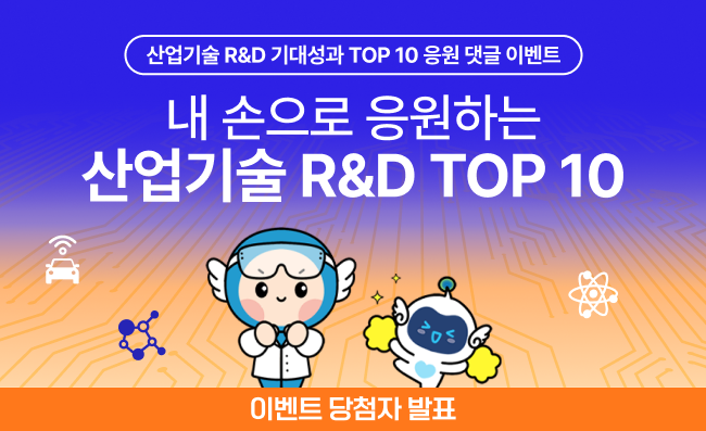 “2025 산업기술 R&D 기대성과 10선" 온라인 이벤트와 관련된 문의는 아래 연락처로 문의하시길 바랍니다.